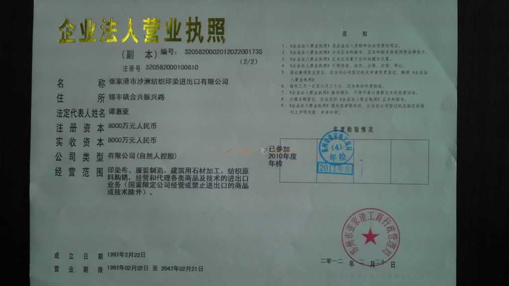 张家港市沙洲纺织印染进出口有限公司