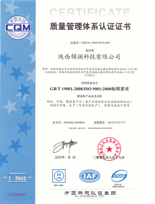 质量管理体系认证证书(彩色中文)