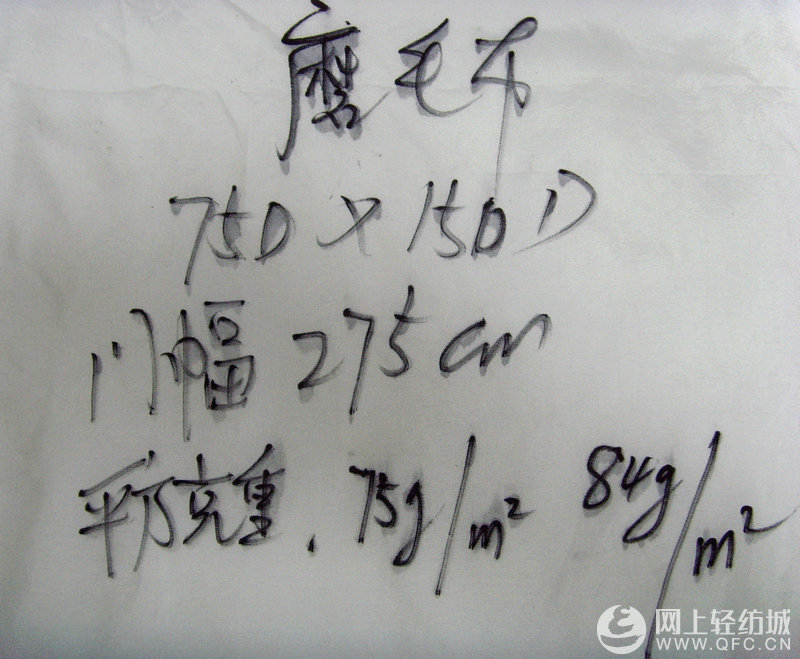 描述: 门幅 263 克重;83 (增白)磨毛布价格:4.7元/米