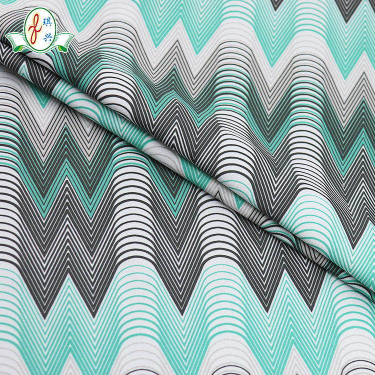 描述: 涤纶印花泳衣面料,三角波浪条纹印花,涤纶泳布