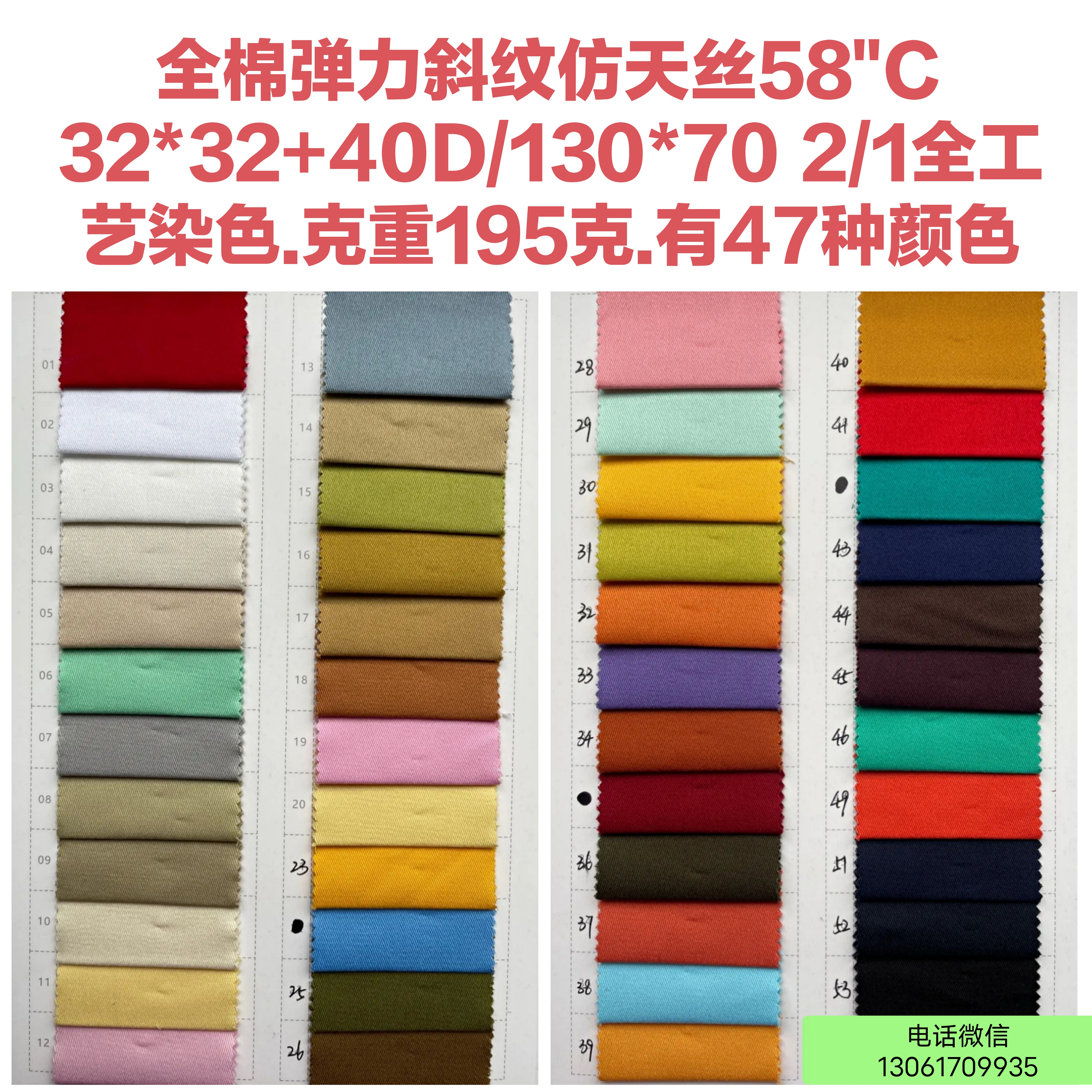 描述: 豫洁现货供应工装.衬衫.医护面料: 全棉阻燃弹力纱卡 58“C 20×16+70D 3/1 克重 280g/m2.藏青色 豫洁现货供应工装.衬衫.医护面料: 棉涤防静电阻燃斜纹 58“CV C 10×10/73×44 2/1 克重 360g/m2.藏青色 豫洁现货供应工装.衬衫.医护面料: 棉涤防静电阻燃斜纹(三防) 58“C80/T19/AS1 16×20/2 2/1 克重 300g/m2.灰色