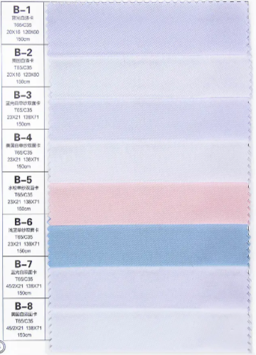 描述: 60“T65/C35 23X23/104X61 1/1夏装医护面料漂白纱绢,A1蓝光白,A2美国白