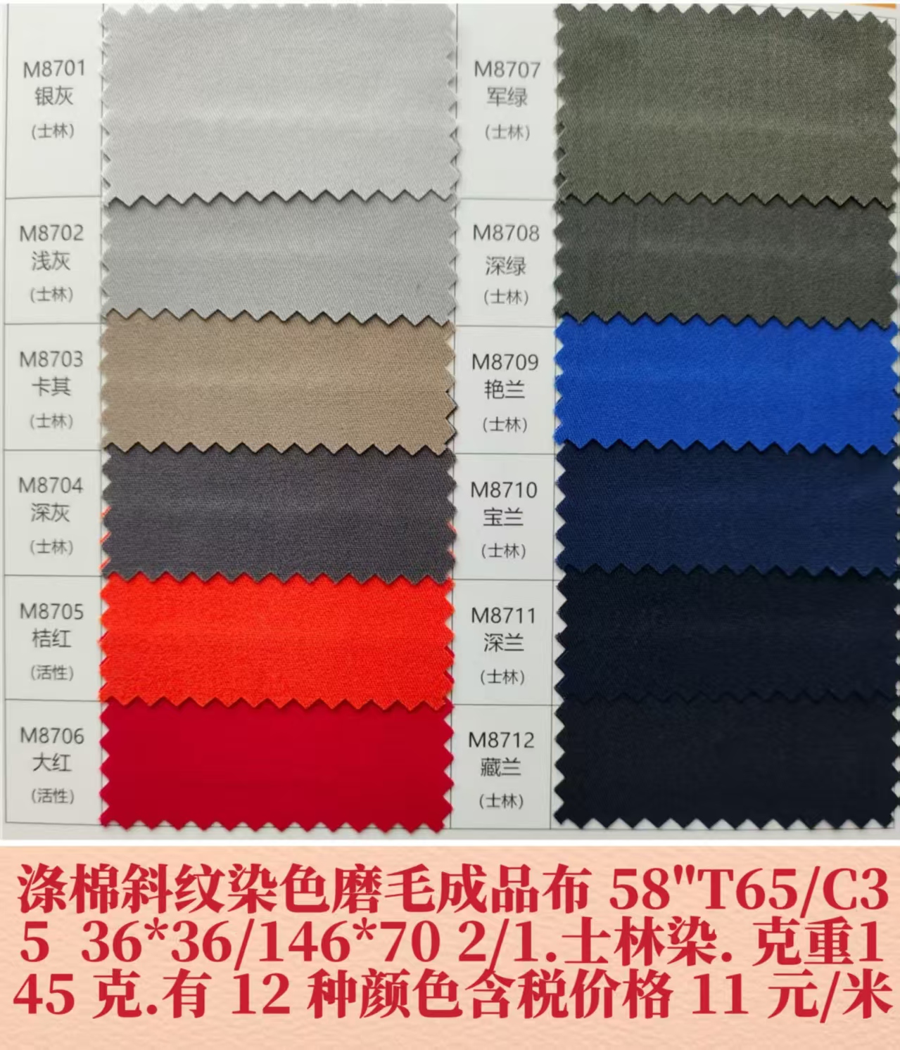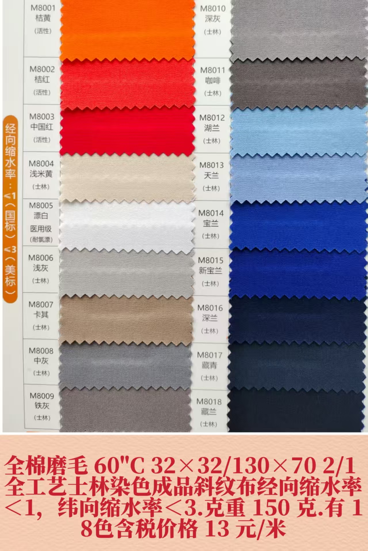 描述: 医用导电布 D35 系列-220 细条 T99/ESD1 75D75F 消光 DTY 28 针 门幅 150cm 克重 220gsm 有 14 种颜色含税价格 13.2 元/米