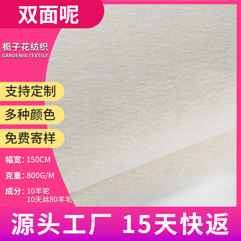 描述: 这款顺毛双面呢面料以全澳毛为原材料,克重为830-850g每米。澳洲羊毛质量稳定,柔软度和光泽度都优于其他类型的羊毛,可以确保面料的高质量和手感。 这款双面呢面料具有优秀的穿着感和耐用性,不仅适合于制作高质量的外套和大衣,也可用于制作其他款式的服装,例如裙子、短裤等。我们还提供多种颜色的选择,以满足客户的不同需求。 作为生产厂家我们提供小批量定制服务,交期仅为7-15天;如需进行大规模批量生产,交期为25-30天。另外,我们通过大宗采购的方法压低羊毛原料的价格,这款面料每米批发价仅需99元,现在咨询还可以免费拿样。