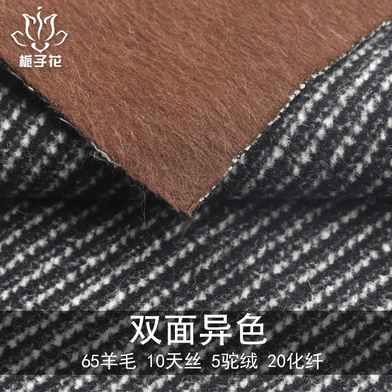 描述: 这款双面双色呢布料充分利用了双面呢的特性,一面是黑白斜纹、另一面是纯咖色。使成衣能表现出更为丰富的视觉效果。布料材质上含有65%的羊毛,还结合了羊驼绒、天丝等优质原料。触感柔软、光泽良好,并具备一定的透气性。同时米克重高达1050克,确保冬季保暖。 斜纹呢面料织物密度较高,产品比较厚实,组织立体感较强,一个组织循环内的交织点少,浮线较长。斜纹呢优点:吸湿性好,手感柔软,穿戴卫生舒适;轻松保暖,穿戴舒适得当,柔软贴身、吸湿性和透气性甚佳。