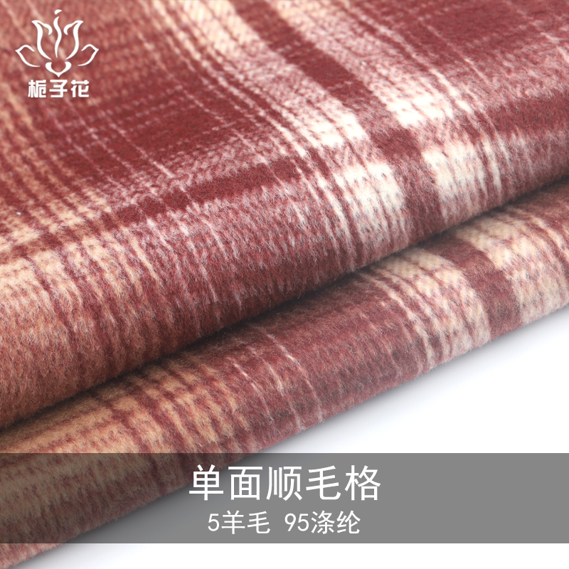 描述: 这款格子顺毛面料外观为红色格纹,而且有棕、白两种底色。相比经典格纹,这款面料可以使成衣风格更加活泼、不呆板。面料每米重630-640克,厚度适中。主要成分为涤纶,并加入了5%的羊毛成分。成品抗皱性、保暖性良好,同时耐磨、易保养。这款面料价格仅为27元一米。如需其他颜色、纹理,我厂还支持面料定做,小批量生产两周内即可完成,大批量交期也不超过一个月。现在咨询客服即可领取免费样布。