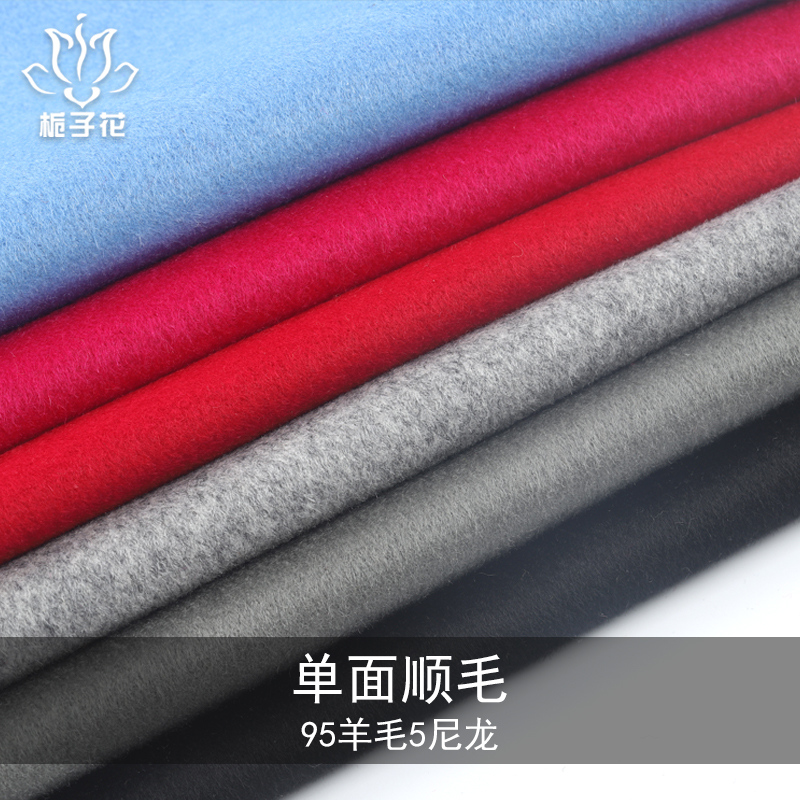 描述: 这款单面顺毛呢面料的材质为95%的天然羊毛加少量尼龙,每米重580-680克。相比纯毛面料更轻盈且耐磨,强度弹性更好。面料采用经典的单面顺毛呢风格,呢面上的绒毛触感顺滑,同时能提供很好的保暖性,适用于长短大衣、外套等秋冬服装。这款面料现有多种颜色可选,批发价低至70元一米。同时,我们还提供面料定制,小批量交期可短至一周,大批量供应也不超过一个月,保证快速反应。现在咨询还能获取免费样布。