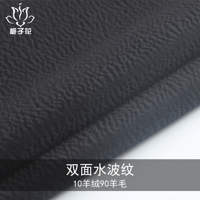 描述: 这款黑色水波纹布料表面有精细的波纹状肌理,在光线下会呈现出华丽的光影效果,相比一般的黑色毛呢更显高级质感。要做出这种水波纹效果对原料有很高的要求,这款布料采用10%羊绒和90%羊毛生产,每米重达800克。适用于高档大衣的设计生产。这款黑色水波纹布料出厂价为220元一米,如需其他颜色,我们还可以高速生产供应,小批量订单两周内即可出货,大批量订单也不超过一个月,确保您能及时获得所需面料。近期还有额外活动折扣。
