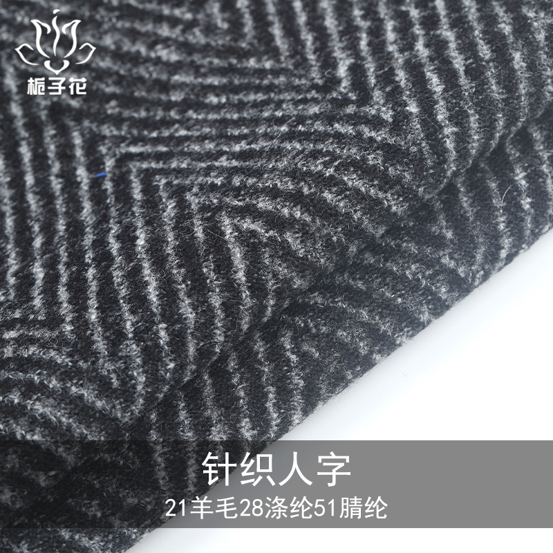 描述: 这款人字针织面料是采用经典的黑白色系搭配,用它制成的大衣在高档时尚的同时还简约耐穿,是大量时尚博主及其受众的心头好。面料是由成分21%羊毛、28%涤纶、51%腈纶的纱线针织而成,幅宽为145cm,米克重为550克。上身舒适,回复性好,不易起毛、起皱。这款面料每米批发价低至55元。我厂还支持其他色系面料定制,小单不到15天即可出货,大货也只需25-30天,保证供应链反应迅速。近期咨询的客户还可获取免费样布。