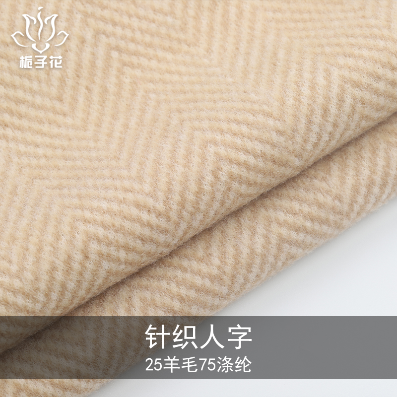 描述: 这款针织人字呢布料门幅宽148厘米,成分包括25%羊毛和75%涤纶。材质挺括、触感舒适、抗皱耐用、易于保养。每米重660克,既有足够的保暖性,又不会过于沉重。布料外观采用米驼色人字纹,针织工艺的纹理十分精致。作为暖色调但饱和度不高,能让成衣充满温柔感和高级感。这款布料为厂家直供,售价低至55元一米。我们还可以定做个性化布料,小批量定制交期不超过半个月,大批量生产也不超过一个月。此外,近期的新客户还可享额外优惠折扣。