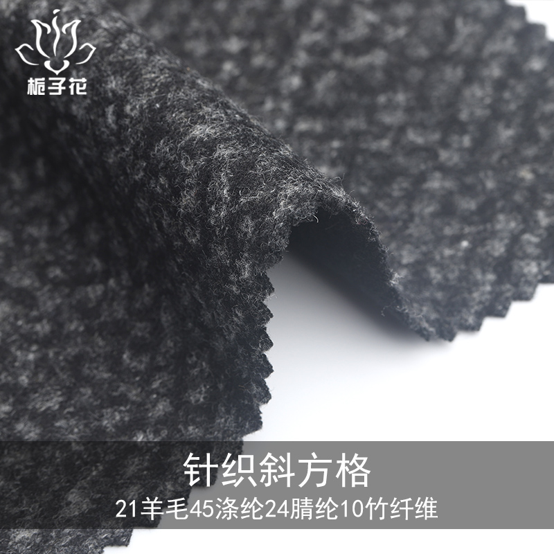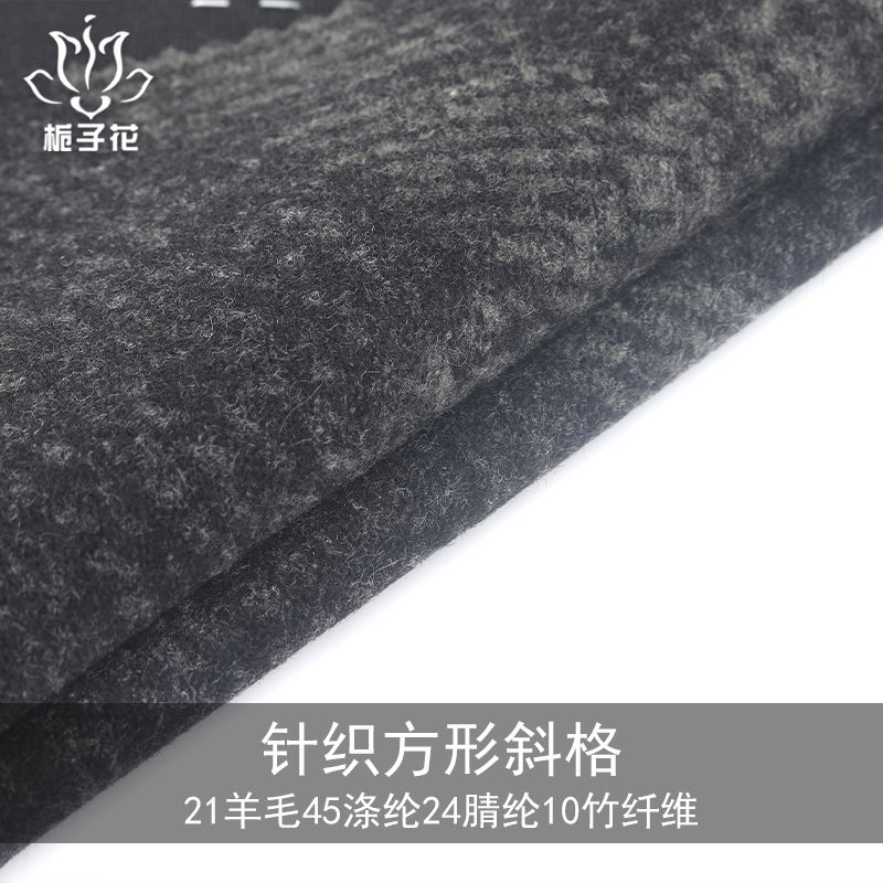 描述: 毛呢针织面料是一种纯羊毛或者含羊毛的混纺面料。俗称呢绒或者是呢料。我们常见的混纺纤维有涤纶、锦纶、天丝、棉纱、腈纶、蚕丝等毛。一般常见的工艺有针织、梭织。针织服饰穿着舒适、贴身合体、无拘紧感、能充分体现人体曲线。毛呢针织面料因为其风格的贴身,穿着时尚感,所以越来越受人们的喜爱。这款针织斜方格面料,适用于制作秋冬大衣、风衣、裤裙、帽子、围巾、箱包等。