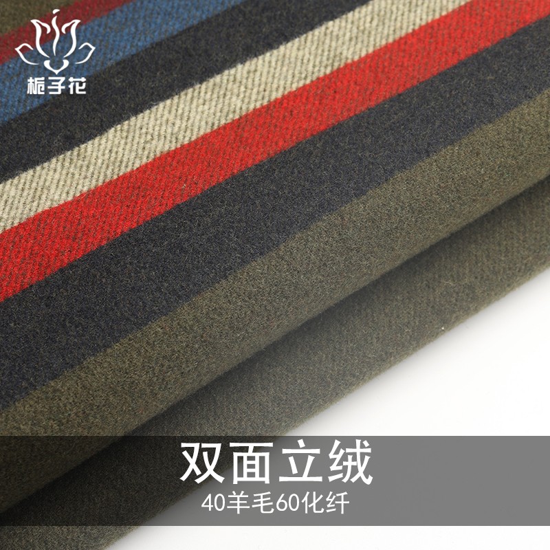 描述: 这款双面呢立绒布料的两面是军绿色和彩色条纹的组合,可以呈现丰富的视觉效果,让成衣充满活力和个性。这款布料每米重785克,厚薄适中。由40%羊毛、60%化纤混纺而成的立绒效果也十分出色。整体触感舒适、质地牢固、绒毛丰满整齐。我们作为源头工厂,交期方面可以做到:小单7-15天,大货25-30天,保证供应链反应快速。同时我们还通过大规模的原料库存采购合理降低了成本,这款双面呢立绒布料现货价仅43元一米,立即咨询还能免费领取样布。