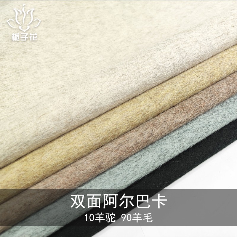 描述: 双面呢是属于双层的面料,正反两面都是呢子的面料,面料可以双面相同,也可以双面双色,比较时尚,具有双面性的特点。由于正反两面都是毛呢缝制,做大衣不需要内衬,会更厚实,更挺括,平整不易起皱。保暖性: 由于是两层独立面料梭织而成。阿尔巴卡就是真实含有羊驼毛的面料,羊驼毛以其质量与色泽特点而闻名于世。其韧性为绵羊毛的两倍,无毛脂,杂质少。用羊驼毛制成的时装,轻盈柔软,穿着舒适,垂感好,不起皱,不变型。这款双面阿尔巴卡面料,适用于制作秋冬大衣、风衣、裤裙、帽子、围巾、箱包等。