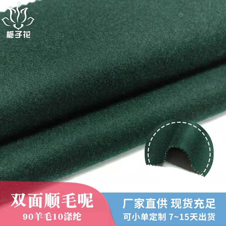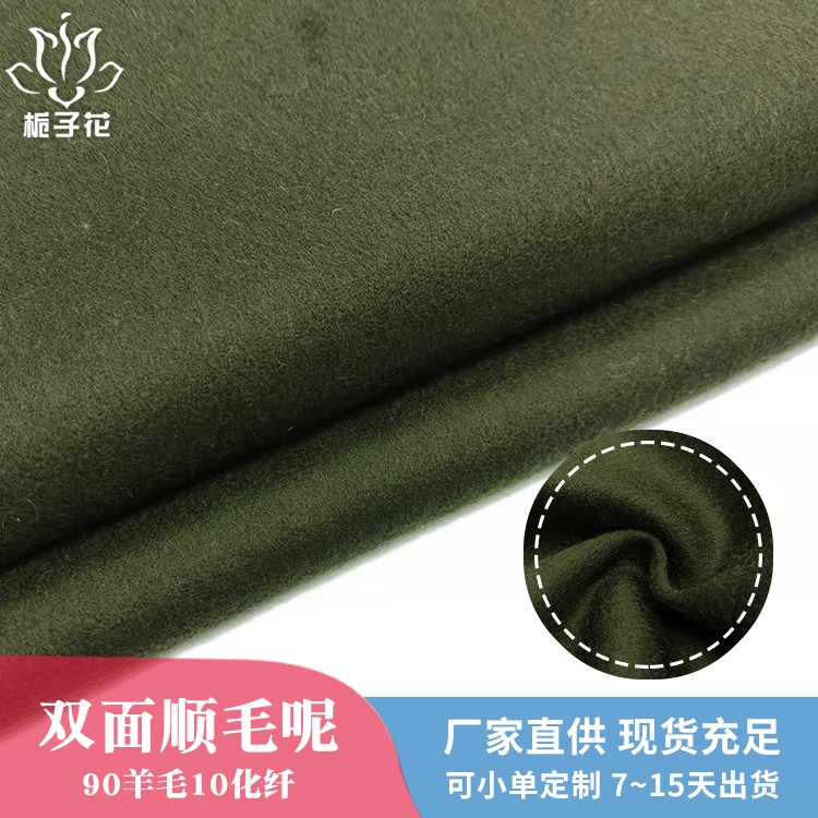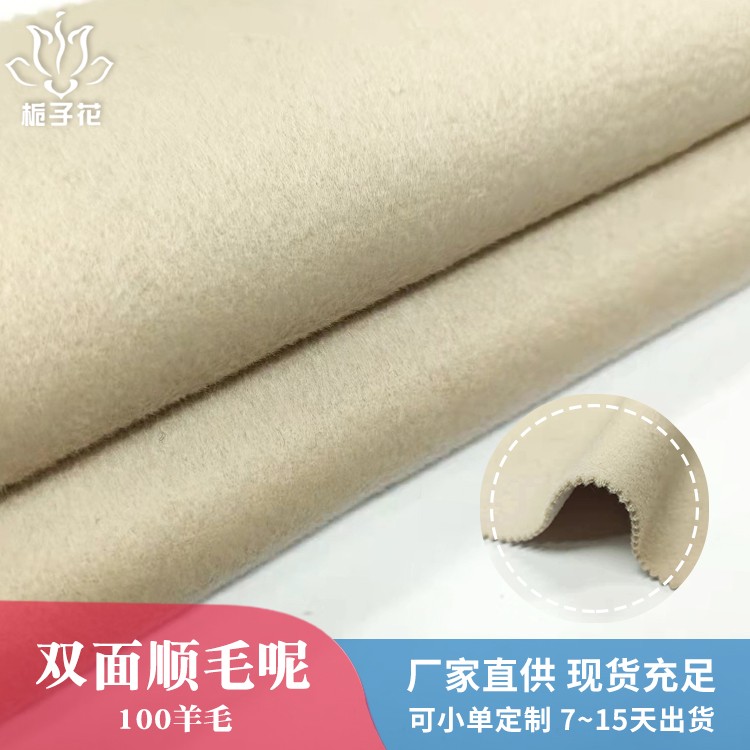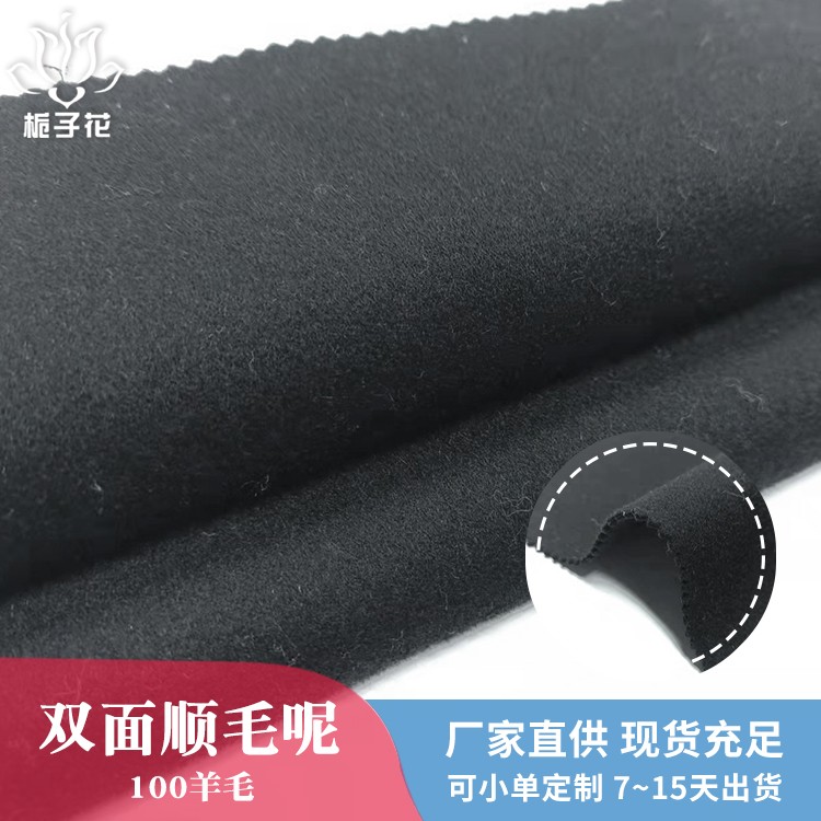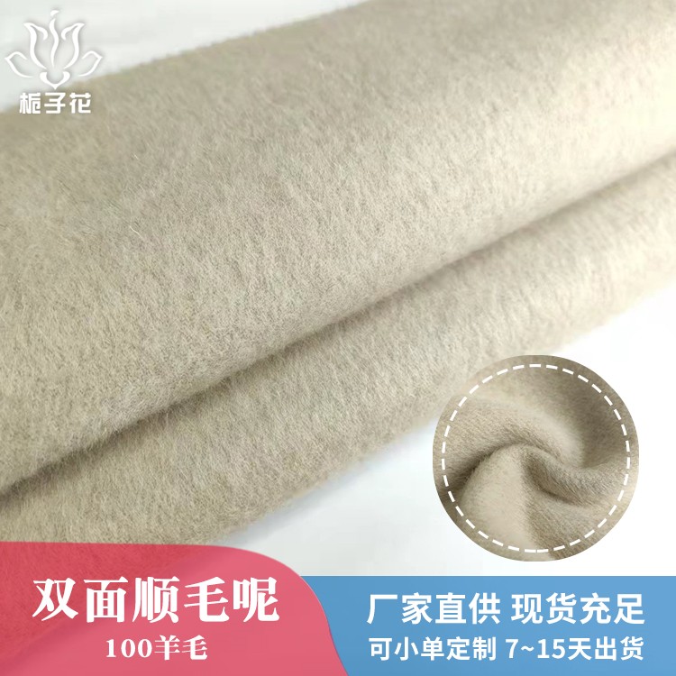 描述: 双面呢是属于双层的面料,正反两面都是呢子的面料,面料双面相同,比较时尚,具有双面性的特点。由于正反两面都是毛呢缝制,做大衣不需要内衬,会更厚实,更挺括,平整不易起皱。 全羊毛面料,手感柔软而富有弹性,身骨挺括、不板、不烂。穿在身上垂坠感好,因弹性上佳所以耐穿性也是没得说的。有膘光感,颜色纯正,光泽自然柔和很有质感。纯羊毛面料用手紧握、抓捏松开后基本无折皱,有轻微折痕也可在短时间内褪去,很快恢复平整。顺毛呢是粗纺面料里的常规品种之一,由于表面的毛顺着一个方向的,有倒顺毛的,所以叫顺毛呢。毛呢面料吸湿性强、穿着舒适,它能吸收人体的排出的湿气,故穿着时感到干爽舒适 。