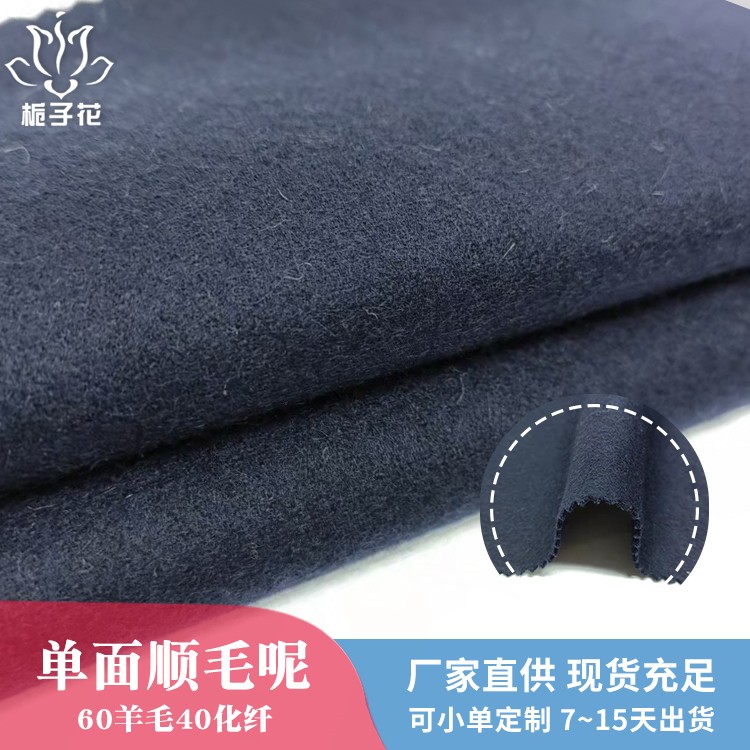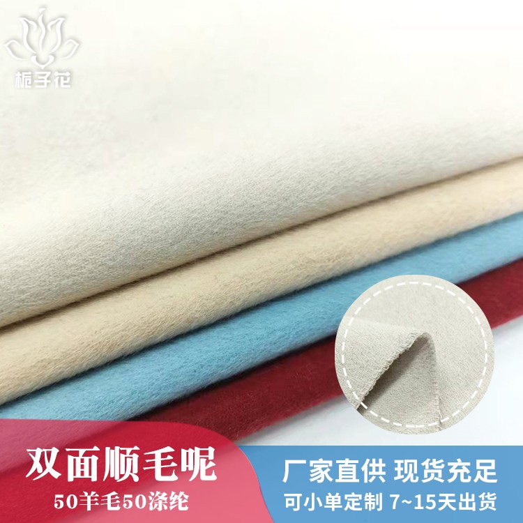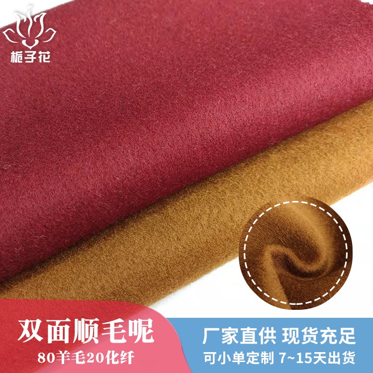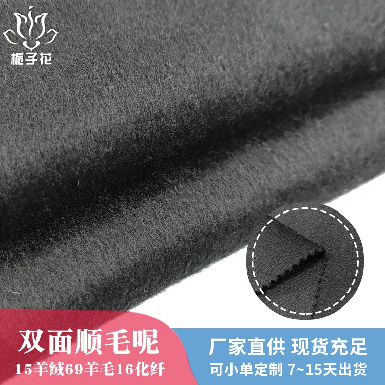 描述: 双面呢是属于双层的面料,正反两面都是呢子的面料,面料双面相同,比较时尚,具有双面性的特点。由于正反两面都是毛呢缝制,做大衣不需要内衬,会更厚实,更挺括,平整不易起皱。顺毛呢是粗纺面料里的常规品种之一,由于表面的毛顺着一个方向的,有倒顺毛的,所以叫顺毛呢。毛呢面料吸湿性强、穿着舒适,它能吸收人体的排出的湿气,故穿着时感到干爽舒适 。羊毛纤维较粗,有挺阔、轻便、保暖的优点,所以更适合做外套。