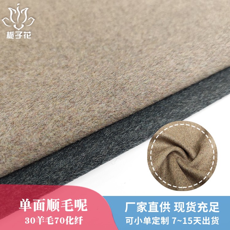 描述: 羊毛双面异色毛呢面料是一种由羊毛制成的毛织物,具有良好的保暖性、透气性和柔软性。它由两层面料组成,正反两面的颜色图案不同,因而非常实用和多功能。这种面料可以用于制作大衣、外套、裙子、裤子等服装,也可以用于家居饰品和手袋等领域。 顺毛呢是粗纺面料里的常规品种之一,由于表面的毛顺着一个方向的,有倒顺毛的,所以叫顺毛呢。毛呢面料吸湿性强、穿着舒适,毛呢面料吸湿性很强,它能吸收人体的排出的湿气,故穿着时感到干爽舒适 。羊毛纤维较粗,有挺阔、轻便、保暖的优点,所以更适合做外套。