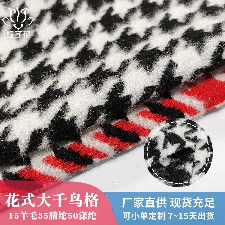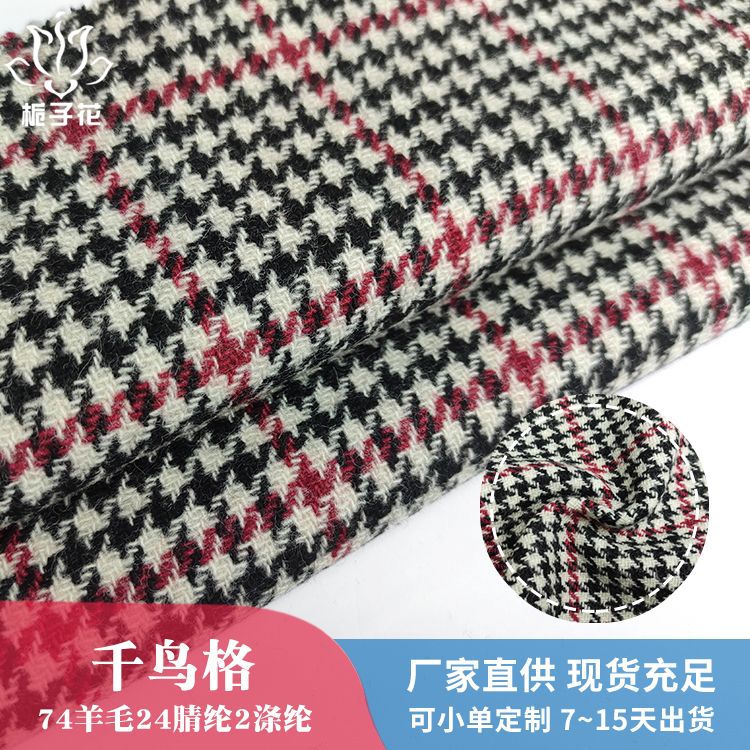 描述: 千鸟格是由许许多多小鸟形状组成的,所以成为千鸟格。经典的千鸟格布纹格子有很多种,千鸟格面料是指优化组合后的犬牙花纹的面料。千鸟格图案的衣服二十多岁到四五十岁的人都可以穿,没有年龄限制,年轻人穿呈现出一种复古、简约的风格,而中年人穿呈现的是优雅的风格,特别的显气质,一直是大热又不会过时的元素,拥有天生优雅的本能。千鸟格堪称经典,很大方,随性,自带一种沉稳、暖心的气质。