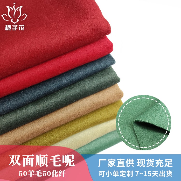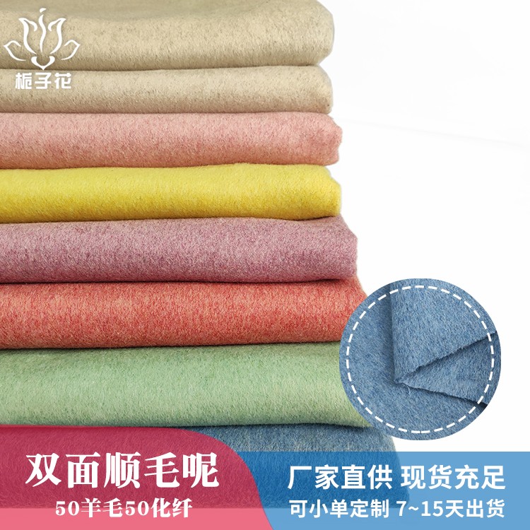 描述: 双面呢是属于双层的面料,正反两面都是呢子的面料,面料可以双面相同,也可以双面双色,比较时尚,具有双面性的特点。由于正反两面都是毛呢缝制,做大衣不需要内衬,会更厚实,更挺括,平整不易起皱。顺毛呢是粗纺面料里的常规品种之一,由于表面的毛顺着一个方向的,有倒顺毛的,所以叫顺毛呢。毛呢面料吸湿性强、穿着舒适,毛呢面料吸湿性很强,它能吸收人体的排出的湿气,故穿着时感到干爽舒适 。羊毛纤维较粗,有挺阔、轻便、保暖的优点,所以更适合做外套。