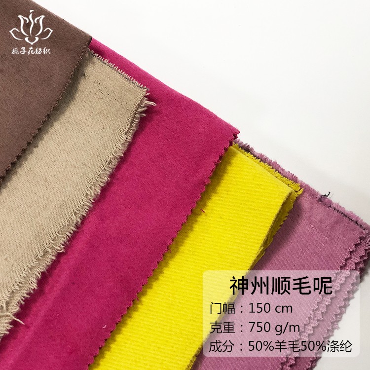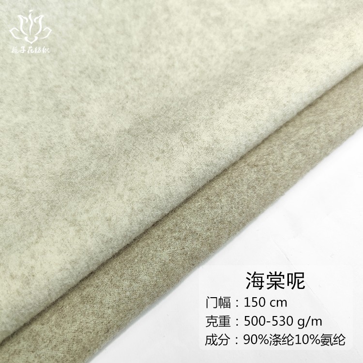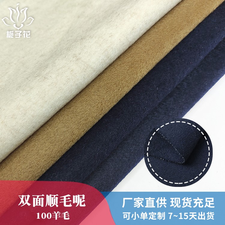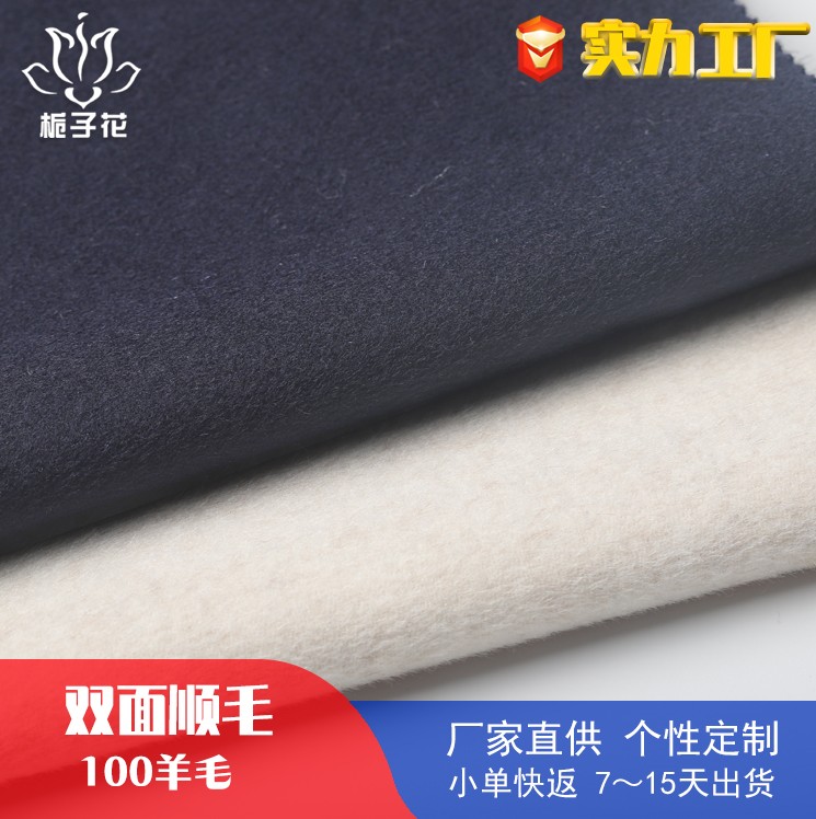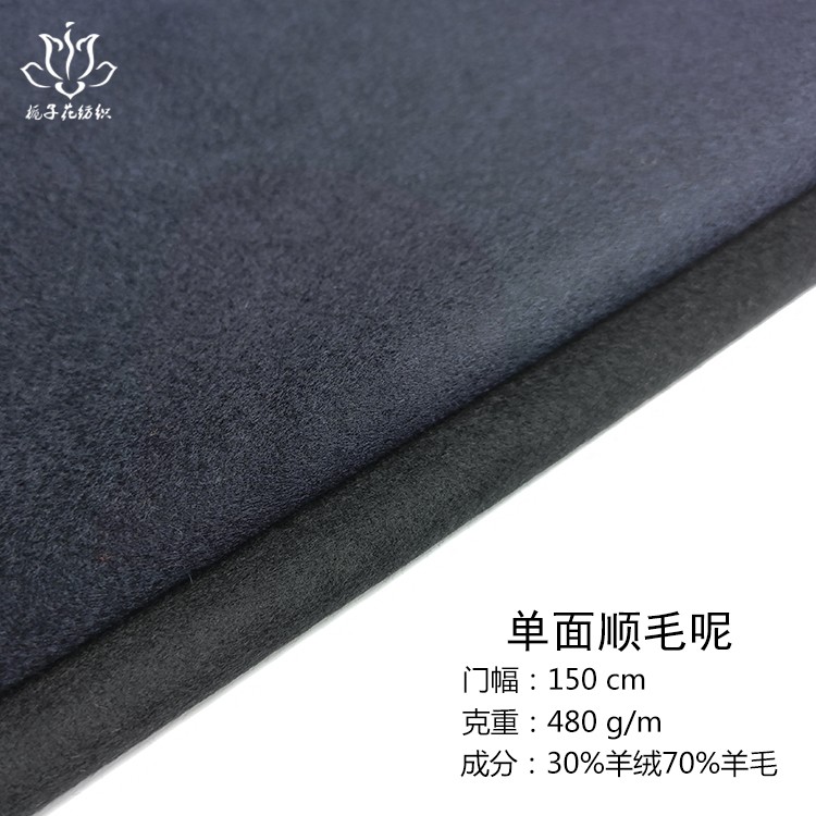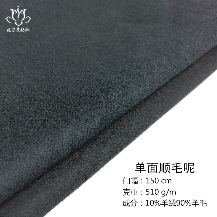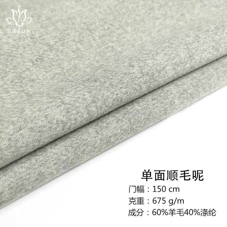 描述: 双面呢是属于双层的面料,正反两面都是呢子的面料,面料可以双面相同,也可以双面双色,比较时尚,具有双面性的特点。由于正反两面都是毛呢缝制,做大衣不需要内衬,会更厚实,更挺括,平整不易起皱。顺毛呢是粗纺面料里的常规品种之一,由于表面的毛顺着一个方向的,有倒顺毛的,所以叫顺毛呢。毛呢面料吸湿性强、穿着舒适,毛呢面料吸湿性很强,它能吸收人体的排出的湿气,故穿着时感到干爽舒适 。羊毛纤维较粗,有挺阔、轻便、保暖的优点,所以更适合做外套。