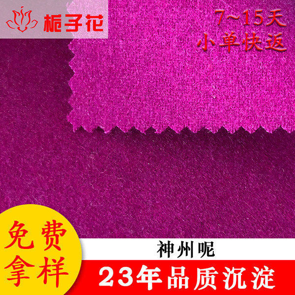 描述: 神州呢是一种羊毛和化纤根据新型技术纺织成的粗纺毛呢面料,其特点是色彩靓丽、饱和度高、绒面紧密柔软、纹理细致。这种面料具有较好的吸湿性,同时耐热透气,可以保持水分、温度在一个良好舒适的状态,触感柔软亲肤。新款厂家直销批发大衣神州呢面料更是融入时尚潮流元素,富有青春感之余又不失典雅的韵味,适用于秋冬时装、外套 、鞋帽、箱包等。 由于当前的服饰纺织行业受到国内外疫情影响较大,为了在新的业界形势下生存,很多厂商开始减少对新品的前期投入,走快节奏、差异化、低价位的新运营模式。传统的面料采购流程耗时往往过长,所以现在很多企业为了满足现在快节奏时尚新品的开发需求,更多向源头厂家批发采购相应的新款面料。但厂家直销批发大衣神州呢面料一般都缺乏时尚前瞻性,性价比也有较大的差异,这些经常成为面料采购人员面前的难题。 无锡栀子花纺织自有工厂位于知名的高新毛纺之都江阴,具有23年的毛呢面料研发生产经验。拥有独立专业的新款面料研发团队,成员皆来自国内外专业院校,总监拥有三十多年的毛呢面料研发经验。该团队能高敏感深度了解毛呢面料服饰的流行趋势,引领毛呢面料市场的时尚风潮。配合自有工厂的高效小批量生产线,栀子花纺织常备毛呢面料码样5000种,同时每年开发新款面料500组,并全部提供免费供样! 为了让利于客户,提供更高性价比的毛呢面料,栀子花纺织已联合上百家同行企业进行资源整合,保证货源充足,优化人力成本。栀子花纺织还通过坚持大宗投入采购原材料,生产上改进经纬不同的织法等手段,在保证面料品质的同时有效降低成本,将面料的性价比做到了业内领先的水平。现欧洲品质标准的厂家直销批发大衣神州呢面料,售价仅为十多元一米!限时供应,先抢先得!