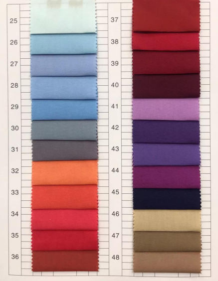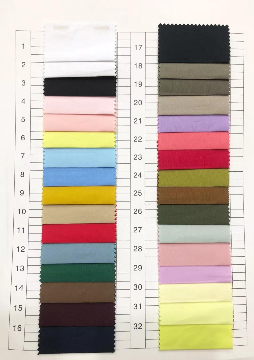 描述: 亚光弹力色丁 50D*75D 95%涤纶+5%氨纶 90g/㎡ 有色卡,色卡色长期有现货,接受订单