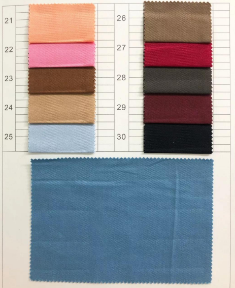 描述: C 40X32/143X90 2/1染色高密府绸仿天丝,长车全工艺,有15种颜色
