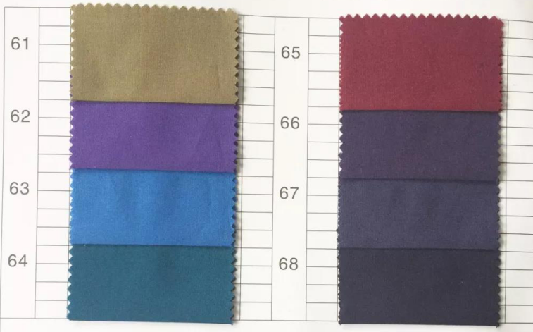 描述: 舒美绸 68D*75D 100%涤纶 80g/㎡ 有色卡,色卡色长期有现货,接受订单