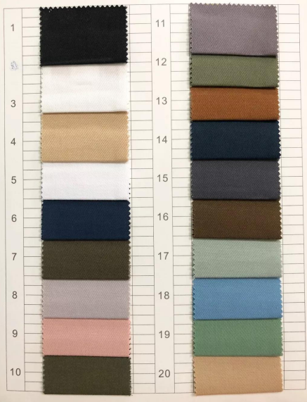 描述: 58“ T65/C35 20x16/128x60 3/1染色,长车全工艺,有16种颜色