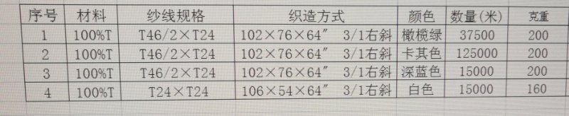 求购: JC 40X40+40D 157X99 0" 弹力斜纹布